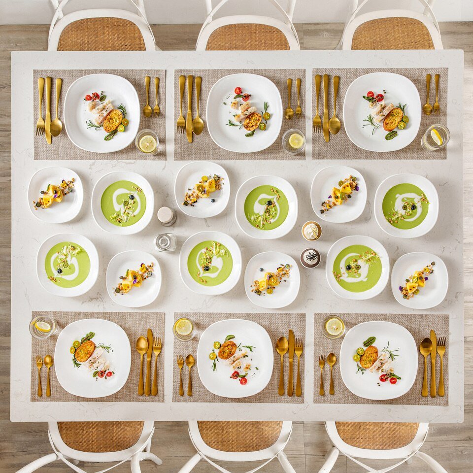 - Composition : Assiettes de différentes tailles pour les entrées, plats principaux et desserts